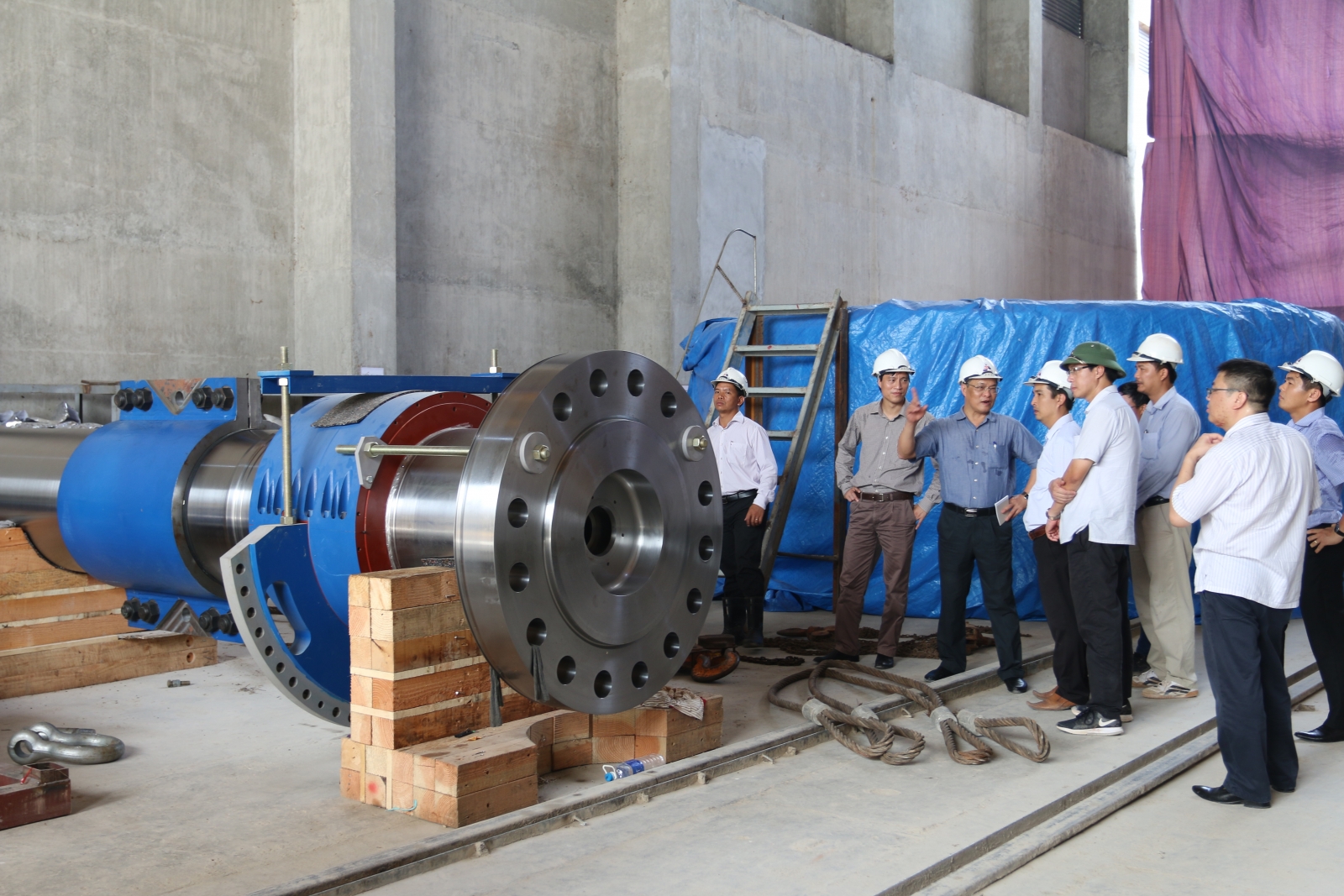 Đoàn công tác của Công ty kiểm tra Trục Turbine Tổ máy 1 trước khi thực hiện hạ xuống vị trí để lắp đặt.
