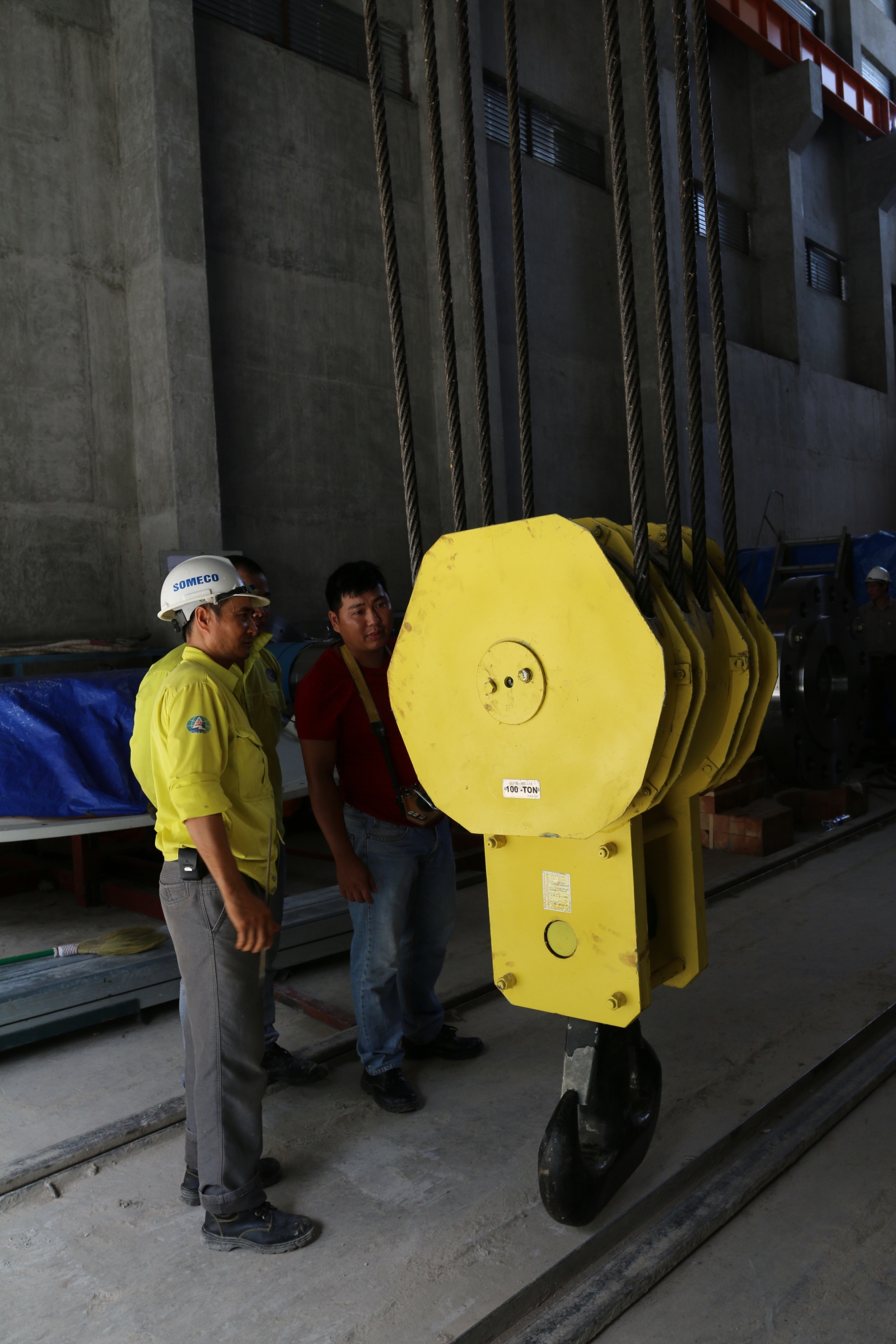 Cán bộ kỹ thuật của Someco kiểm tra lần cuối thiết bị cầu trục gian máy – Cụm Móc nâng 100 tấn, đảm bảo đúng yêu cầu kỹ thuật và an toàn tuyện đối phục vụ công tác lắp đặt và tổ hợp thiết bị các Tổ máy.