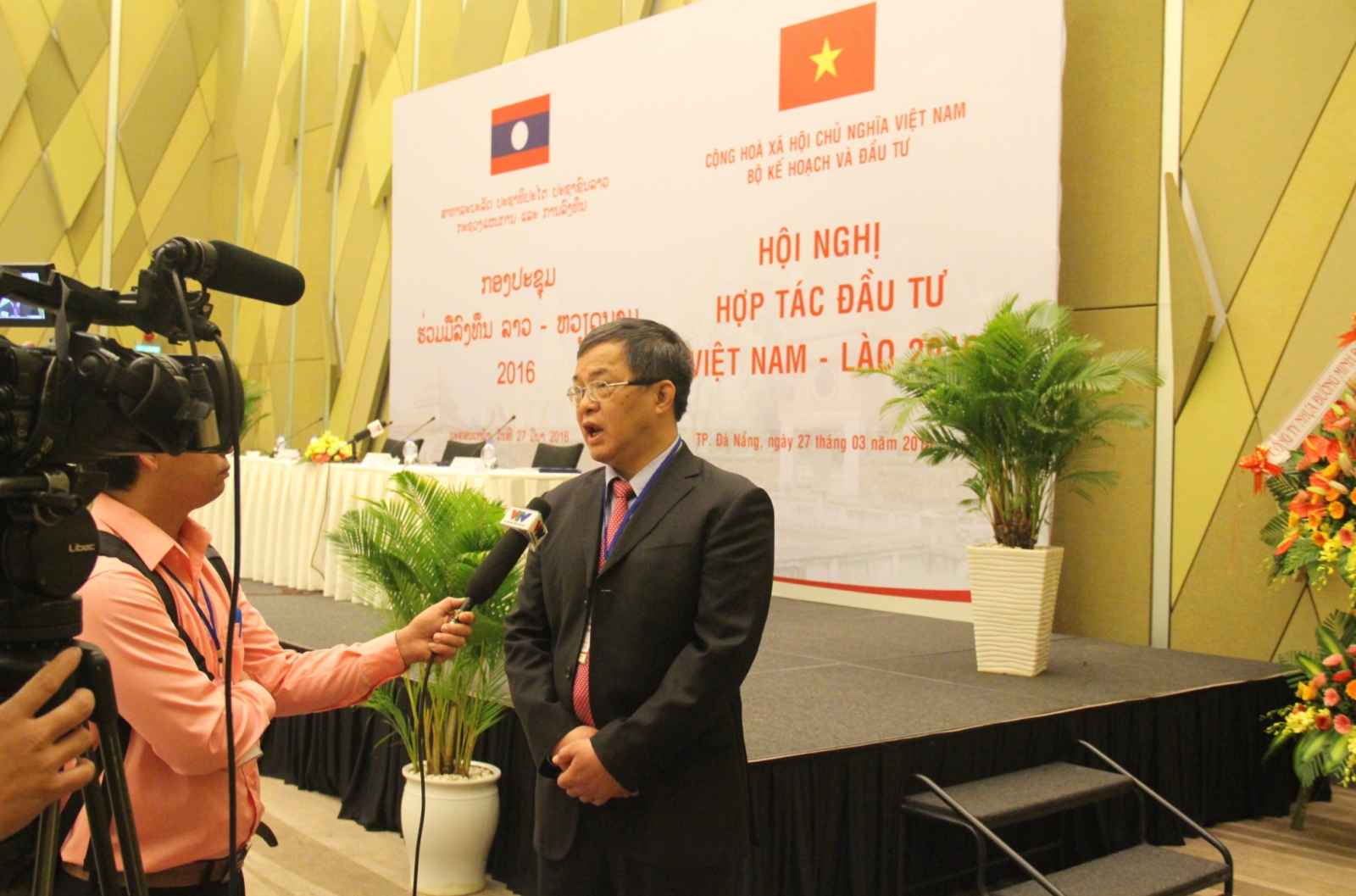 Đồng chí Lê Văn Tốn trả lời phỏng vấn VTV bên thềm hội nghị