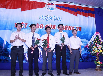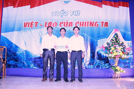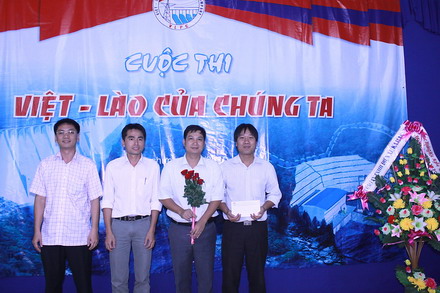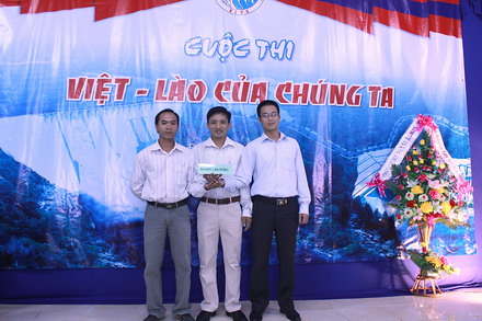 Anh Nguyễn Khắc Dũng – Chủ tịch Công đoàn, Trưởng BTC và anh Hoàng Cung Thượng Nhân – Trưởng VPĐD Công ty tại Lào trao giải ba cho đội Hoa Chăm pa