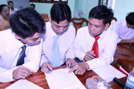 8 giờ 30 phút, cuộc thi chính thức bắt đầu với phần thi trắc nghiệm, gồm 25 câu hỏi, làm trong thời gian 10 phút. Ngay sau khi nhận được đề, các đội lập tức chụm đầu lại, tập trung cao độ làm bài.