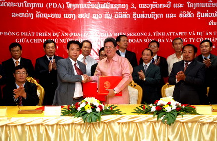 Trong Lễ ký kết này, Đại diện Chính phủ Lào có đồng chí TS Bun Tha Vi Sỉ Su Phăn Thon - Thứ trưởng Bộ Kế hoạch và Đầu tư Lào; Đại diện chủ đầu tư, Tập đoàn Sông Đà có đồng chí Trần Văn Tuấn - Phó tổng giám đốc Tập đoàn Sông Đà ký kết dự án thủy điện Sekong 3 và đồng chí Phạm Văn Tăng, Tổng giám đốc công ty cổ phần điện Việt - Lào ký kết dự án thủy điện Xekaman 4.