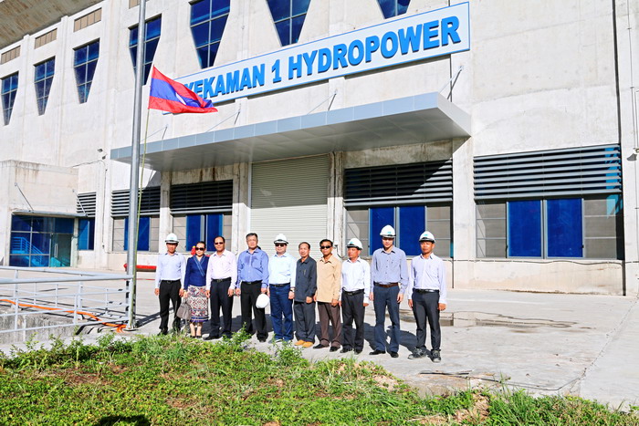 Chụp ảnh lưu niệm bên ngoài Nhà máy thủy điện Xekaman1