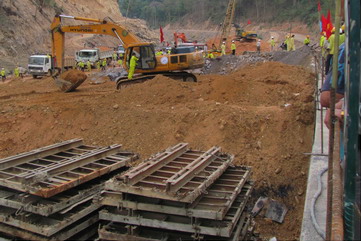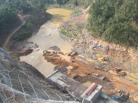 Giữa mùa khô ở Lào, nắng nóng như thiêu đốt, song hàng trăm kỹ sư, công nhân cùng máy móc thiết bị vẫn khẩn trương làm việc suốt ngày đêm. Và công sức của họ đã được đền đáp xứng đáng - hạng mục cống dẫn dòng hoàn thành đúng tiến độ.