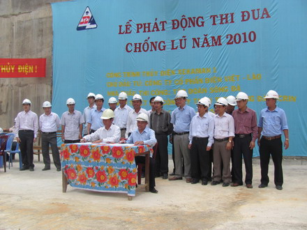 Ngày 04/5/2010, hơn 300 CBCNV của Chủ đầu tư, tư vấn thiết kế, Ban điều hành dự án và các nhà thầu trong đồng phục bảo hộ lao động gọn gàng đã tập trung về khu vực cống dẫn dòng để dự Lễ phát động thi đua chống lũ năm 2010. Cờ Tổ quốc Việt Nam, Lào tung bay rực rỡ giữa đại ngàn Trường Sơn càng tăng thêm quyết tâm hoàn thành thắng lợi mục tiêu mới của cán bộ kỹ sư, công nhân trên công trường.