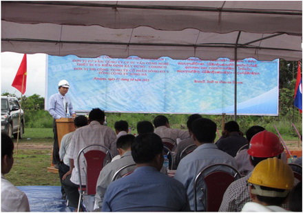 Phát biểu tại buổi lễ, Ông Nguyễn Văn Thự - Phó Giám đốc Công ty TNHH Điện Xekaman1 cho biết: Dự án thủy điện Xekaman 1 được khởi công tháng 3/2011, phát điện tổ máy số 1 vào tháng 3/2016, hoàn thành toàn bộ năm 2017. Để ổn định đời sống cho các bản thuộc khu vực Dự án đồng thời hỗ trợ chính sách xây dựng cụm bản tập trung của tỉnh Attapeu, tháng 6 năm 2014 Công ty TNHH Điện Xekaman 1 đã tiến hành khởi công xây dựng Khu Tái định cư Soukavang Dakbou nhằm ổn định cuộc sống cho 815 nhân khẩu thuộc 2 bản Dakbou và Soukavang. Đến nay, công tác xây dựng cơ bản đã hoàn thành. Tiếp theo thành công đó, đồng thời thực hiện cam kết với Chính phủ Lào, Công ty TNHH Điện Xekaman 1 tiếp tục tiến hành khởi công xây dựng Khu Tái định cư Houydoum để ổn định cuộc sống cho những người dân thuộc 03 Bản: Himdam, Donkhen, Tangkeu nằm trong khu vực dự án.